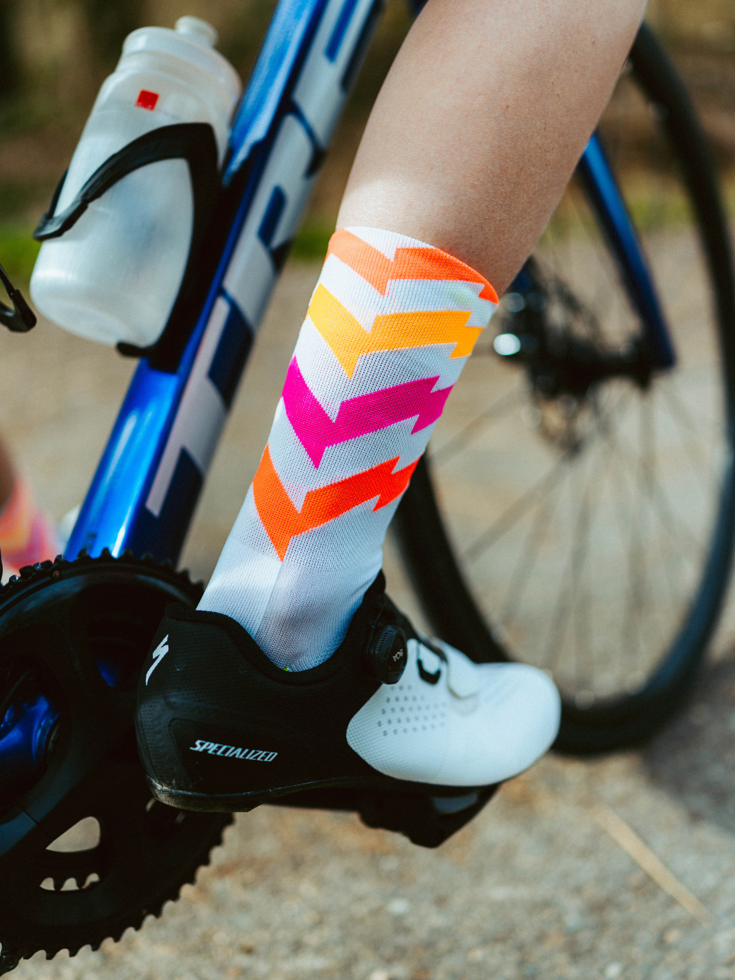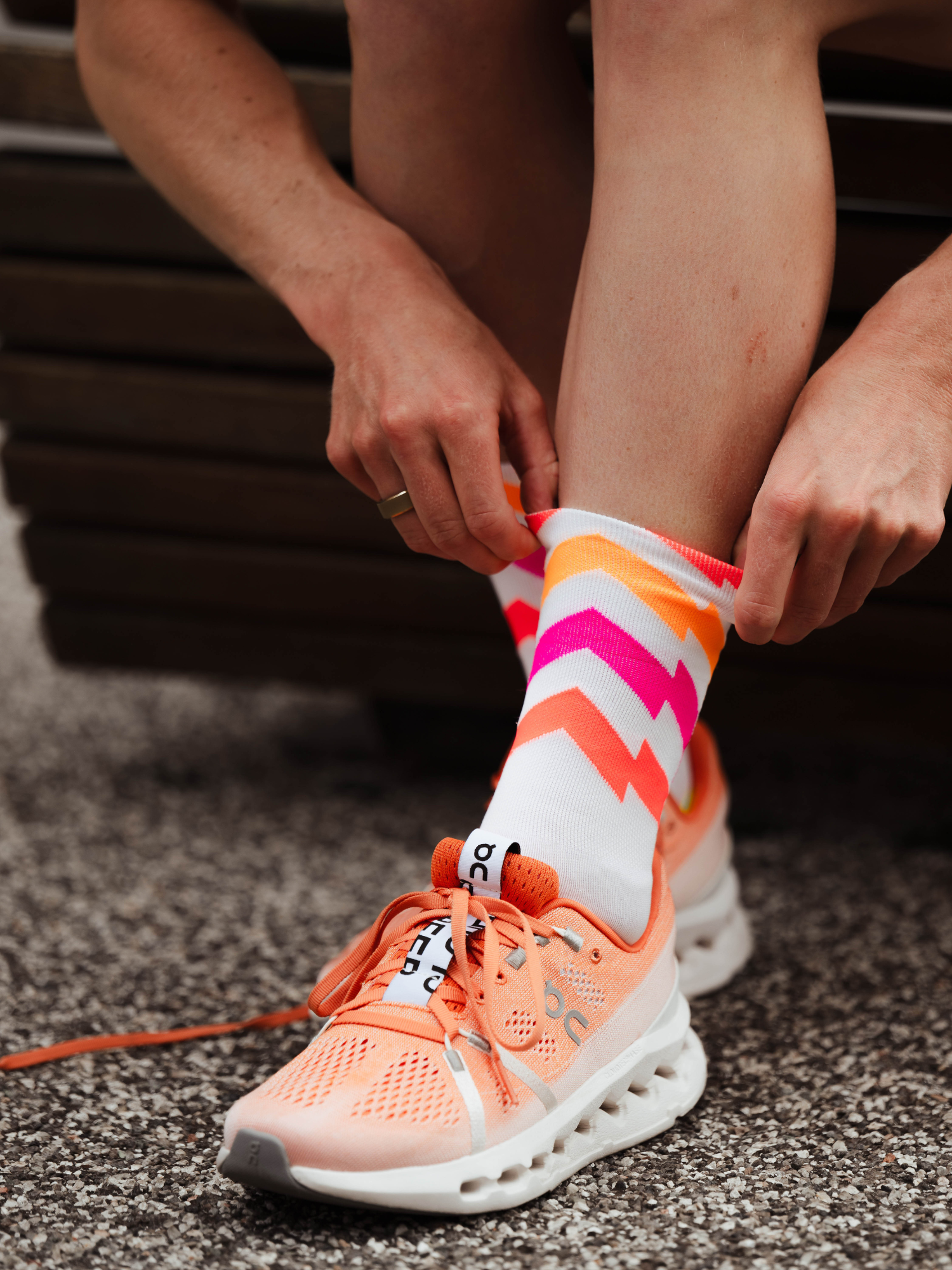 INCYLENCE Ultralight Waves Electric long sock. These high-cut cycling and running socks are constructed using the ultra-light Dryarn® microfibre which provides excellent properies for both maximum comfort and outstanding performance.
