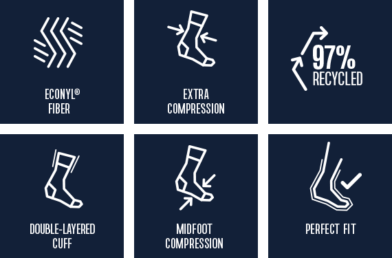 Made in Portugal these socks provide great breathability, durability and comfort. Extra cushioning under the forefoot and at the heels guarantee great feel no matter how long or intense the session is.