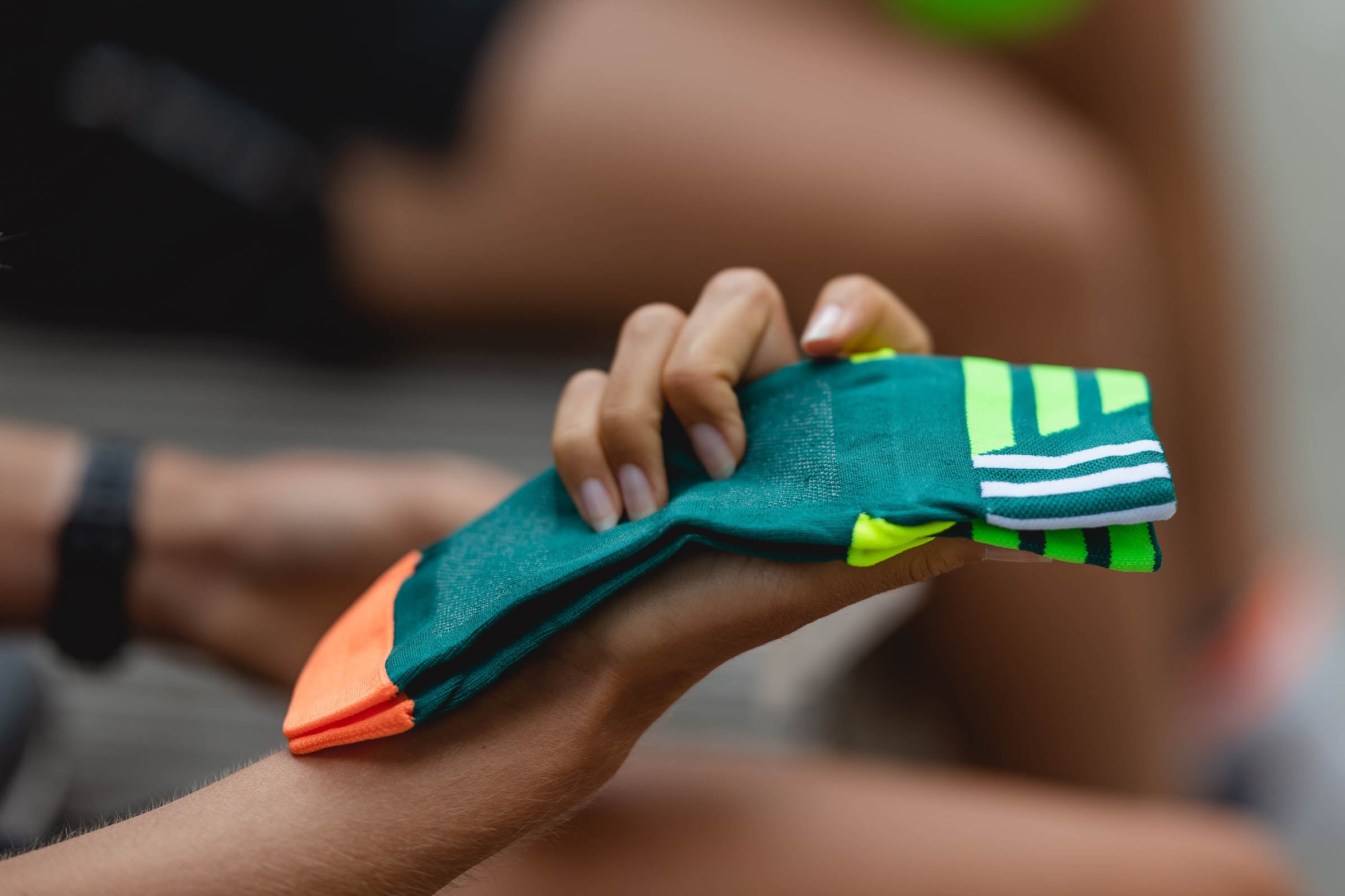 Incylence Ultralight Contrasts Green Low Cut are ultra lightweight performance socks using Dryarn® fibre technology that wicks away moisture quickly for optimal comfort and performance. These low cut socks are super comfortable and fast drying, breathable with a double layered cuff, seamless toe and compression in the mid foot for extra stability to guarantee you maximum comfort and outstanding cycling and running performance.